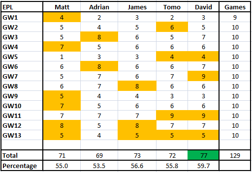 > A-League Round 9/EPL Gameweek 14 Megatips > EPLGW13
