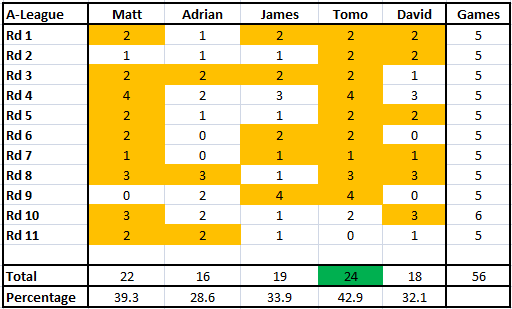 > A-League Round 12/EPL Gameweek 18 Megatips > A-LeagueRd11