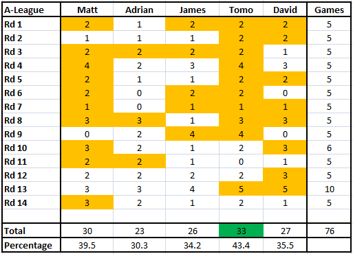 > A-League Round 15/EPL Gameweek 21 Megatips > A-LeagueRd14