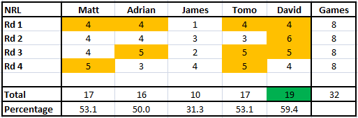 > A-League Finals 1/EPL Gameweek 31/Super Rugby Round 6/NRL Round 5/AFL Round 1 Megatips > NRLRd4