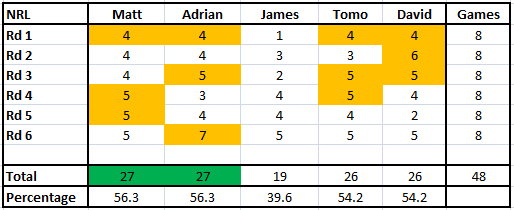 > A-League Finals 3/EPL Gameweek 34/Super Rugby Round 8/NRL Round 7/AFL Round 3 Megatips > NRLRd6