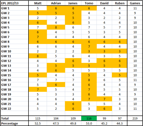 > EPL Gameweek 23/A-League Round 17 Megatips > EPLGW22
