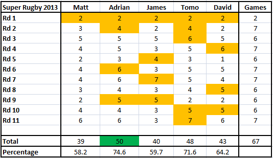 > EPL Gameweek 36/Super Rugby Round 12/NRL Round 8/AFL Round 6 Megatips > SuperRugbyRd11