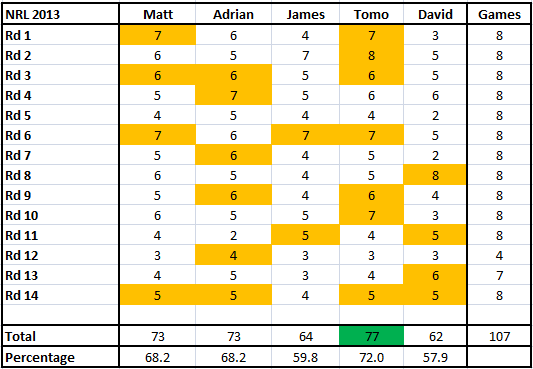 > NRL Round 15/AFL Round 13 Megatips > NRLRd14
